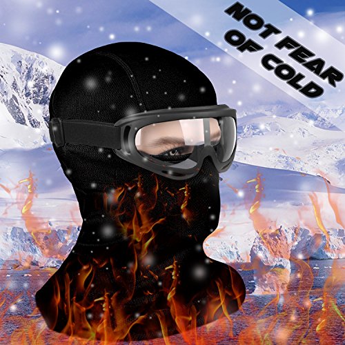 -. Feature : EXCELLENT MATCH - Balaclava with Ski Goggles, Ultimate Protection from Wind, Dust, Cold Weather, Snow, Sunshine and Harmful Lights, Perfect fit for Women Men and Children - Protect Yourself & Family. / VERSATILITY - Wear your balaclava on its own or under a helmet. Wear it as a full face mask, open balaclava, half ski mask or neck gaiter. People use our balaclavas for Skiing, Snowboarding, Riding, ATVing, Running,Hunting, Walking the Dog, Construction, Warehouse work and Shoveling snow. Ski Goggles - Get rid of the fear of wind, dust, cold air, snow, sunshine and harmful lights. / COMFORTABLE - Wear Them While: Skiing, Motorcycling, Running, Biking, Trekking, Mountain Climbing, Snowboarding, Airsoft paintball, Hunting, Tactical training, Cycling and other outdoor activities. / SIZE - One Size fits Most, Designed for kids, youth, adult men and women over 10years; fabric is hypo-allergenic and non-irritating to the skin. Machine washable and very quick dry. / PACKAGE & GUARANTEE - 1 x Balaclava Face Mask + 1 x UV400 Anti-fog Ski Goggles. COOLOO provides 12- Month Warranty for every customer that purchased our products. No worry about the quality! If there is anything wrong with our products, please feel free to contact us via Email. We will solve the problem as soon as possible.