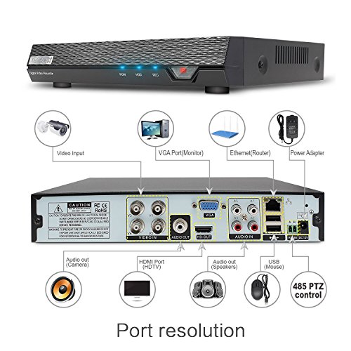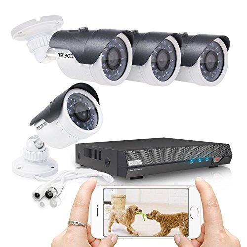 TECBOX k01c6h Security Camera System 4 Channel 720P Ahd Home Video Cctv Surveillance Dvr Recorder, No Hard Drive 4 Hd 1.3Mp Night Vision, Waterproof, Indoor / Outdoor