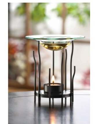 SKB Family Black Spine Tealight Oil Warmer Fragrance Burner Scented Aroma Glass Scent