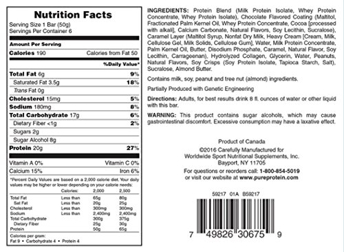 ReleaseDate : 2016-11-01 Studio : Nature's Bounty Publisher : Nature's Bounty Binding : Health and Beauty Product Description Pure Protein High Protein Bars feature the winning combination of high quality protein, and great taste. This delicious Chocolate Peanut Butter bar is loaded with 20 grams of protein, and is packed with vitamins and minerals to help fuel your busy day. Take your Pure Protein High Protein Bar with you anywhere for a sensationally nutritious snack you can enjoy whenever hunger strikes. 0