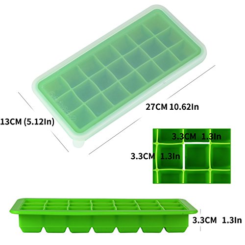 - Each tray makes 21 cubes. High quality silicone lid matches to each ice cube tray: keeps the ice clean, melts slowly, reduces dilution, keeps you drinks chilled longer and keeps ice cubes from absorbing freezer odors. Can withstand temperatures from -40 degrees Fahrenheit to 446 degrees Fahrenheit. Oven, Microwave, Freezer and Dishwasher safe.