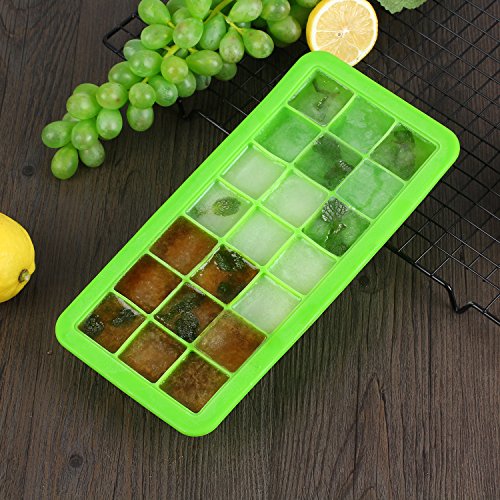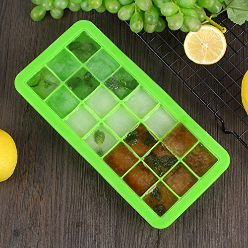 Premium Silicone Ice Cube Tray with Lid,21 Cube, Flexible Rubber Plastic Stackable Mini Cocktail Whiskey Ice Cube Mold Storage Containers (Green)