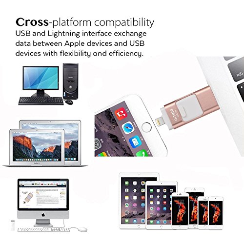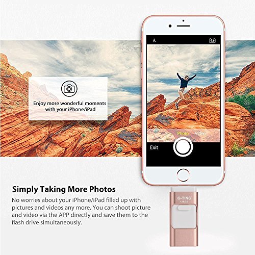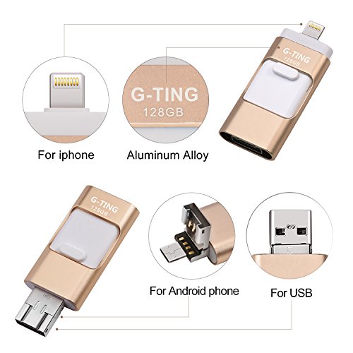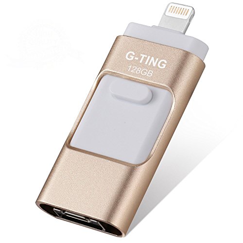 USB Flash Drives for iPhone 128 GB Pen-Drive Memory Storage, G-TING Jump Drive Lightning Memory Stick External Storage, Memory Expansion for Apple IOS Android Computers (Gold)