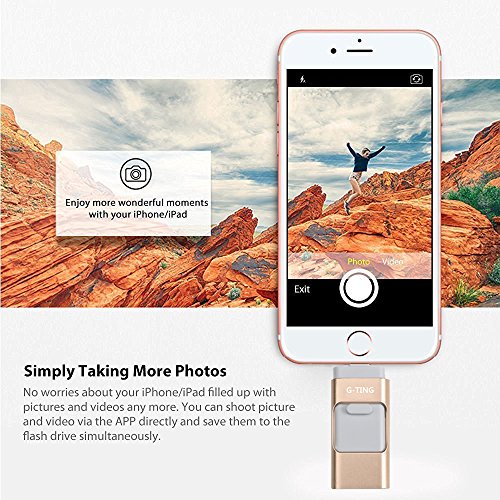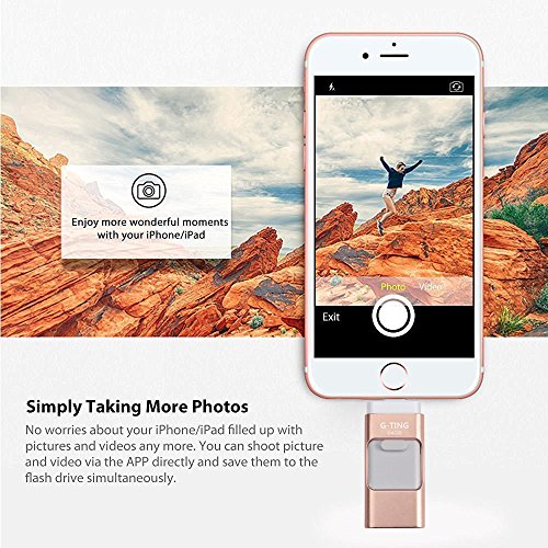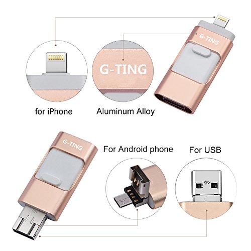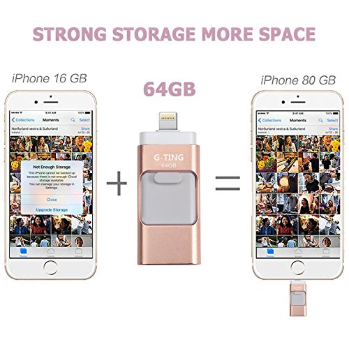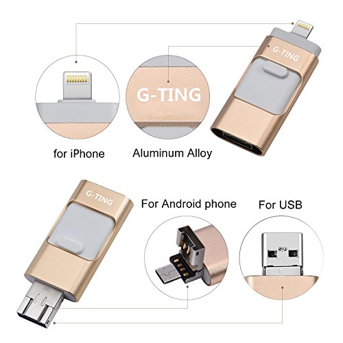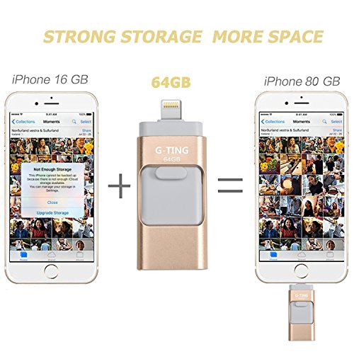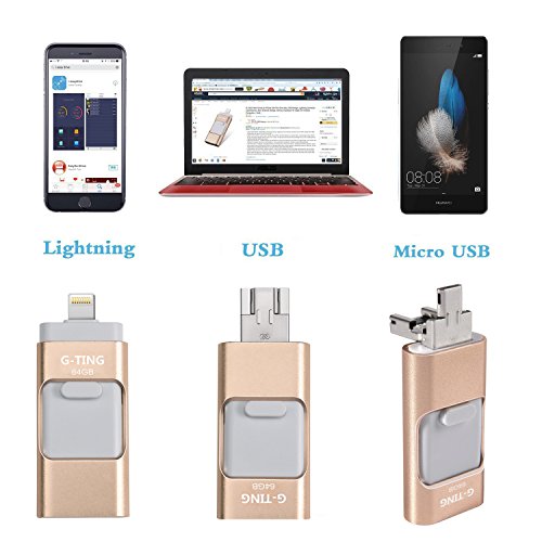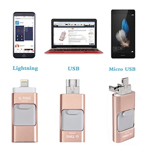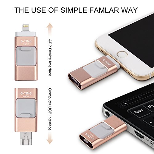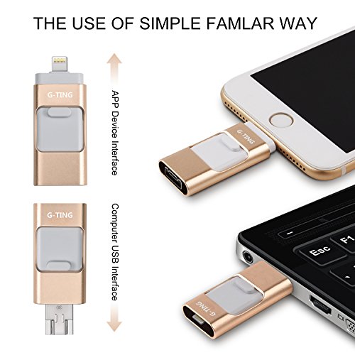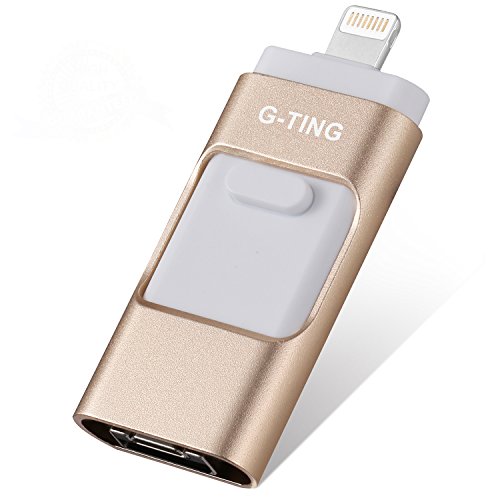 USB Flash Drives for iPhone 64 GB Pen-Drive Memory Storage, G-TING Jump Drive Lightning Memory Stick External Storage, Memory Expansion for Apple IOS Android Computers (Gold)