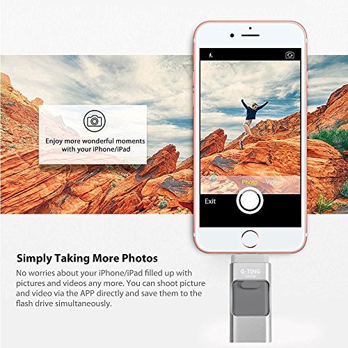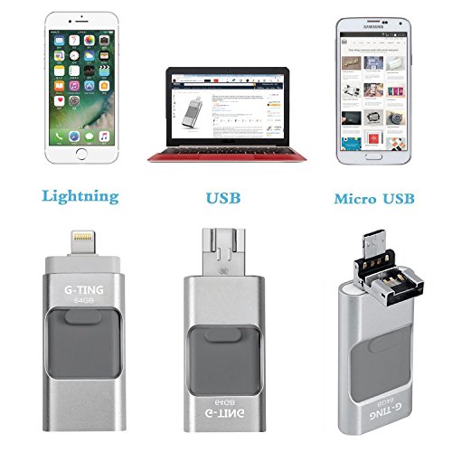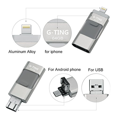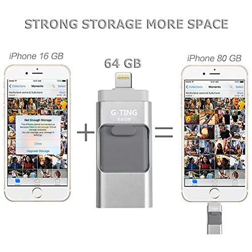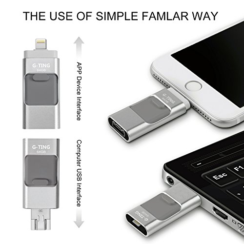 USB Flash Drives for iPhone 64GB Pen-Drive Memory Storage, G-TING Jump Drive Lightning Memory Stick External Storage, Memory Expansion for Apple IOS Android Computers (Silver)