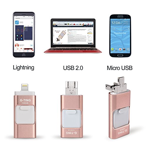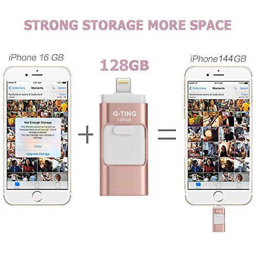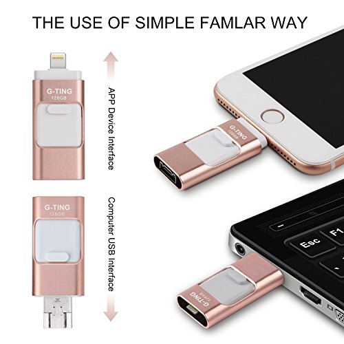 USB Flash Drives for iPhone 128 GB Pen-Drive Memory Storage, G-TING Jump Drive Lightning Memory Stick External Storage, Memory Expansion for Apple IOS Android Computers (Pink)