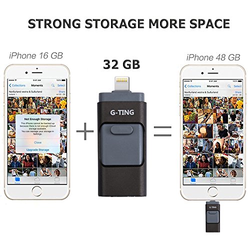 USB Flash Drives for iPhone 32GB Pen-Drive Memory Storage, G-TING Thumb Drive Lightning Memory Stick External Storage, Memory Expansion for Apple IOS Android Computers (Black)