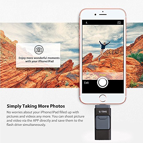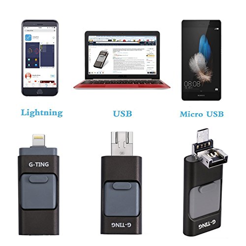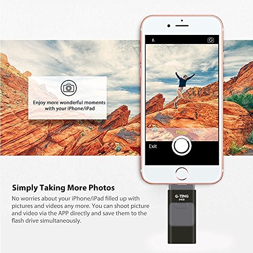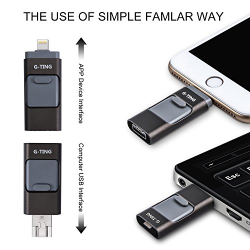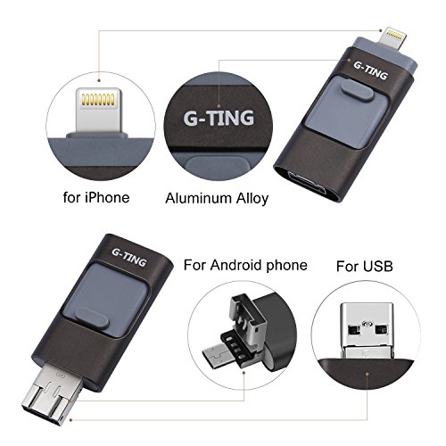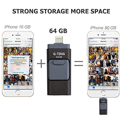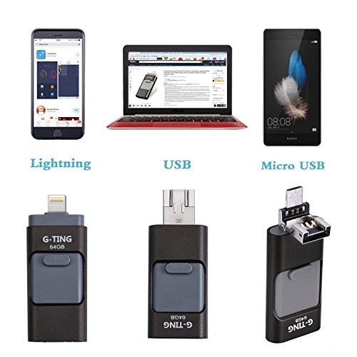 USB Flash Drives for iPhone 64 GB Pen-Drive Memory Storage, G-TING Jump Drive Lightning Memory Stick External Storage, Memory Expansion for Apple IOS Android Computers (Black)