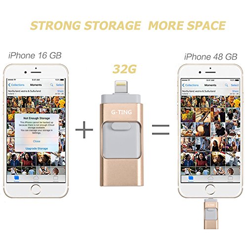 USB Flash Drives for iPhone 32GB Pen-Drive Memory Storage, G-TING Jump Drive Lightning Memory Stick External Storage, Memory Expansion for Apple IOS Android Computers (Gold)