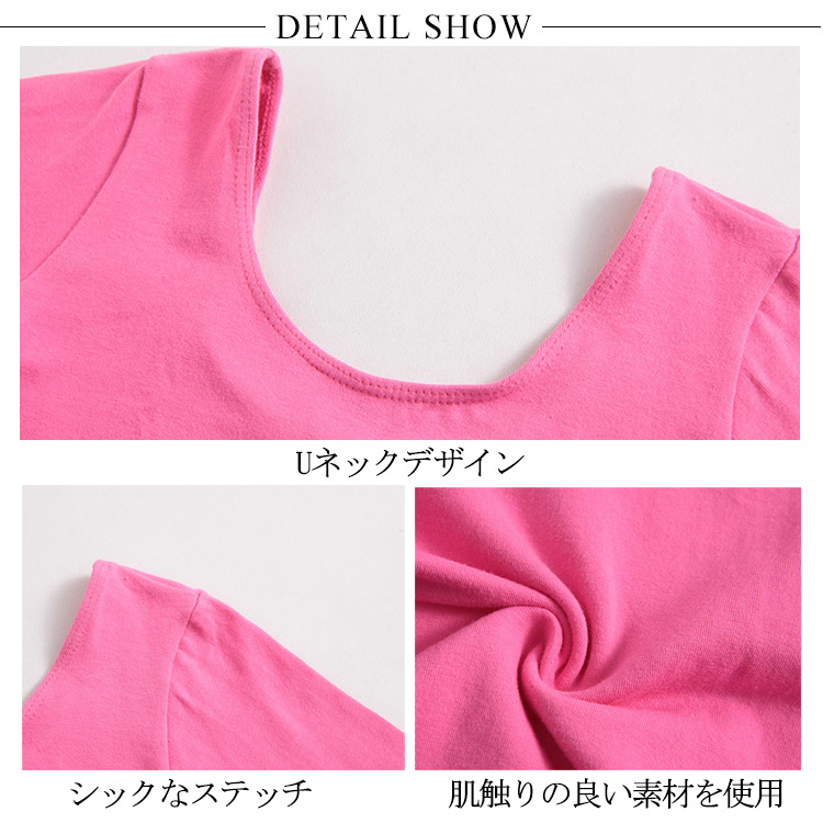 | 肌触りもよく、厚みもあって透けにくいので安心して着て頂けます。伸縮性のある綿素材なので、着やすく汗をしっかり吸収します。前後はやや深めU字カットで、鎖骨ライン綺麗に見える。普段の稽古や練習でのレッスン着としても、新体操やダンス、発表会の演出服としてもご使用いいただけます。 | |