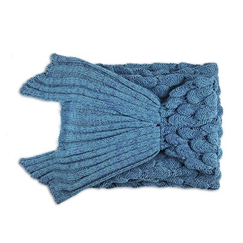 Package Content 1x BATTOP Mermaid tail knitted blanket-75 "x35 "- (Fish Scale Style, Light Blue)