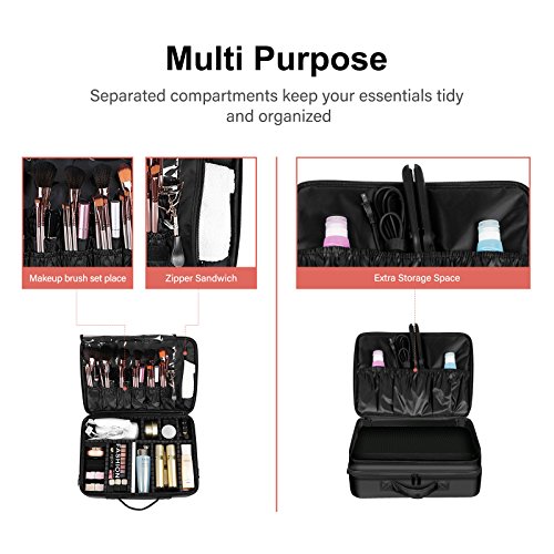 - 3. Four types to carry this makeup case: As a backpack, shoulder bag, handle bag or as a attached bag stay on luggage.
