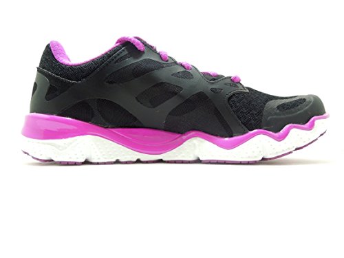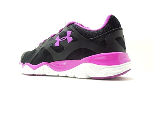 -. Binding : Apparel -. Brand : Under Armour -. Color : Black White Purple -. Department : womens -. Feature : Stability meets speed in this high performance running shoe / Foot-hing HeatGear® upper delivers a super breathable second skin fit / Medial TPU bumper adds extra stability by correcting mild to moderate pronation / Padded MPZ® toe and tongue protects your foot while allowing you to cinch your laces tight for a stable, secure fit / Beefier Micro G ® midsole provides extra cushioning and more consistent rebound -. ProductGroup : Shoes -. ProductTypeName : SHOES -. Title : Under Armour Micro Monza Running Shoes Womens Black White Purple