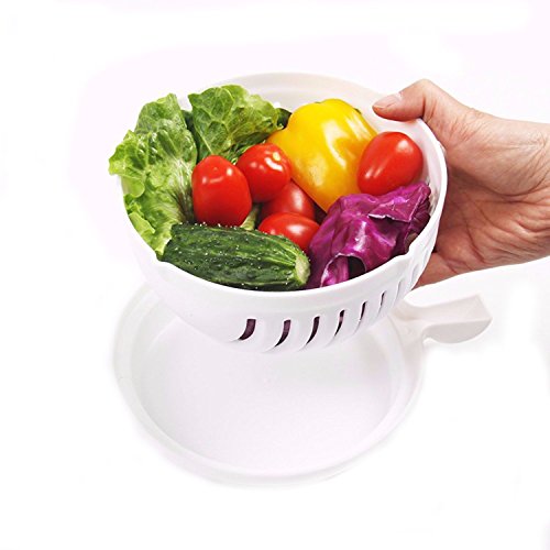 ✔️ EASY TO CLEAN: The salad cutting bowl is easy to clean and dishwasher safe. You can easily wash and drain fruits and vegetable using the lid and then chop them to your desire. To clean simple remove the lid and rinse or place it in the dishwasher