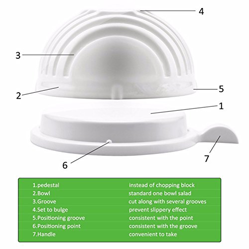✔️ SAFE AND DURABLE - Never worry again about cutting your finger when using our salad bowl chopper. The salad cutter is equipped with its own chopping board that house the lid for the cutter. Once the Vegetable are place in the bowl and closed the groove provide a safe channel to chop your the vegetables to perfection.
