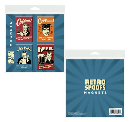 Retro Spoofs Novelty College Humor 2x3 Inch Button Fridge Magnets (Set of 4 Large Magnetic Buttons)