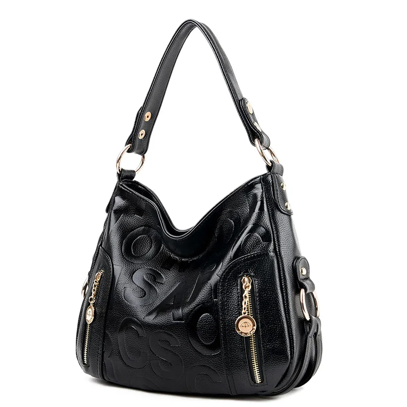 Letter Printing Hobos Women Bag:PU Women Leather Handbags