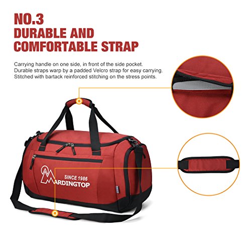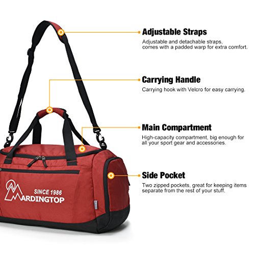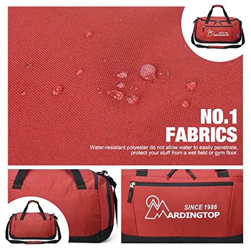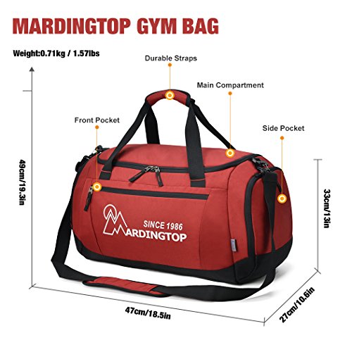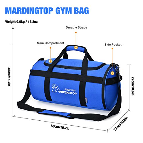 -. Brand : Mardingtop -. Feature : MATERIAL- Water-resistant 600D polyester do not allow water to easily penetrate, protect your stuff from a wet field or gym floor. SBS Zipper, open and close smoothly. / PADDING BOTTOM- Well padding bottom part keeps a good shape for the bag and protect your items. / DETACHABLE & DURABLE HOOKS- Adjustable and detachable straps, comes with a padded warp for extra comfort. Durable hooks on both side can easily attach or detach. / CARRY-ON BAG- It can meet most major Airline cabin restrictions. / 90 DAYS LIMITED WARRANTY- If you don't like this Duffel Bag, it's available to return. -. IsAutographed : 0 -. IsMemorabilia : 0 -. Label : Good Outdoor -. Manufacturer : Good Outdoor -. MPN : DSM5960ANDM5970 -. PartNumber : DSM5960ANDM5970 -. ProductGroup : Sports -. ProductTypeName : OUTDOOR_RECREATION_PRODUCT -. Publisher : Good Outdoor -. Studio : Good Outdoor -. Title : Mardingtop Gym Bag Duffel Bag Travel Lage for Sports Traveling Gym Vacation