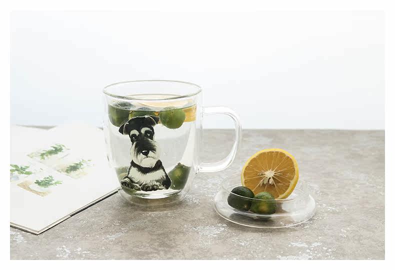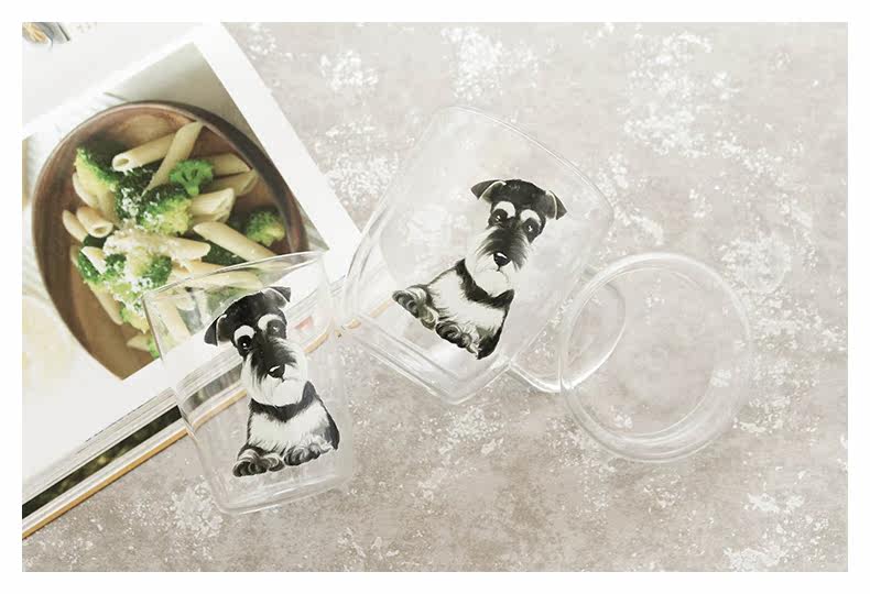 可爱雪纳瑞系列手工吹制玻璃杯狗狗水杯萌宠动物咖啡杯牛奶咖啡杯