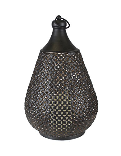 -. Feature : Choose from available sizes / Metal construction / Dark brown external finish / Lattice design adds unique lighting element / Holds 1 LED pillar candle (included)