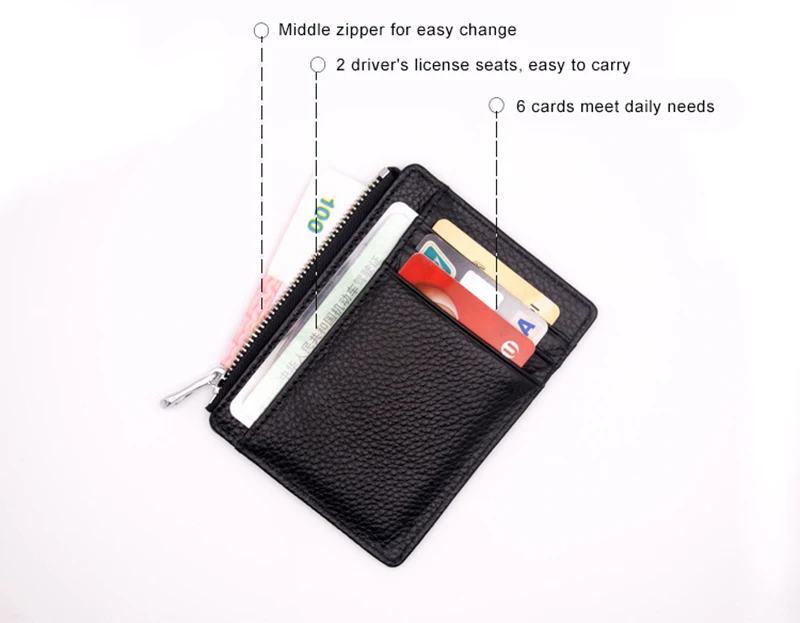 inner structure:Card, large note holder, small change, hidden space, zipper, ID