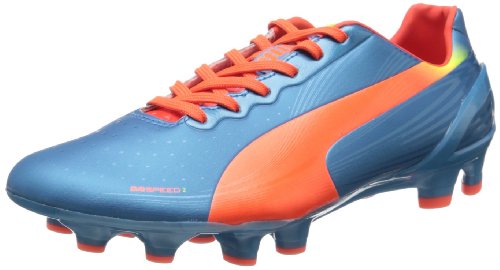 PUMA Men's Evospeed 2.2 Firm Ground Soccer Shoe,Sharks Blue/Fluorescent Peach/Fluorescent Yellow,9.5 M US