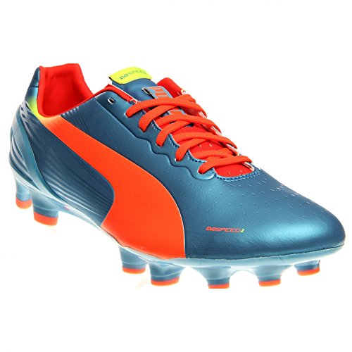 PUMA Men's Evospeed 2.2 Firm Ground Soccer Shoe,Sharks Blue/Fluorescent Peach/Fluorescent Yellow,12 M US