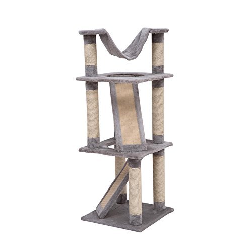 -. Title : Pawhut 52 Four Story Cat Tree Scratching Post w/ Ramps and Hammock - Gray by Pawhut