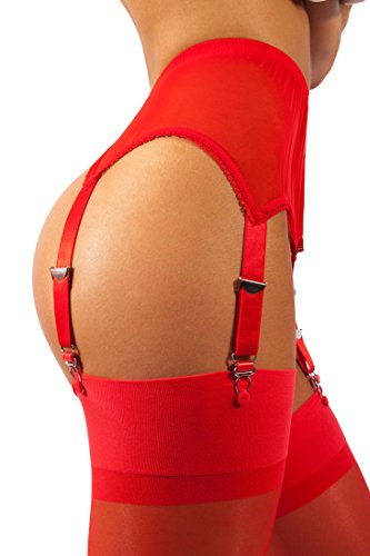 -. Feature : A Timeless, Ultra-Sexy Look: Love the vintage look? This see-through suspender belt with straps can be worn with thigh-high stockings to create a sensuous, super-feminine ensemble. / Smooths Out Your Shape: For all shapes & sizes - not just stick-thin models! This wide, sheer, elasticized belt smooths out any lumps & bumps, making you feel beautiful, sexy, and desirable. / Superior Quality Materials: Our clips have been manufactured just for our brand, using only premium materials. They're extra-durable and won't break easily, unlike inferior garter belts. / Soft, Non-Irritating Waist Band: This band is made of comfortable, high-quality material that retains its elasticity after repeated use. It won't cut into your skin, even after hours of wear. / Just-Right Sizing: Available in sizes X-Small, Small, Medium, Large, and X-Large. Please see Sizing Chart for help finding the perfect fit. Makes a GREAT GIFT for that special someone!