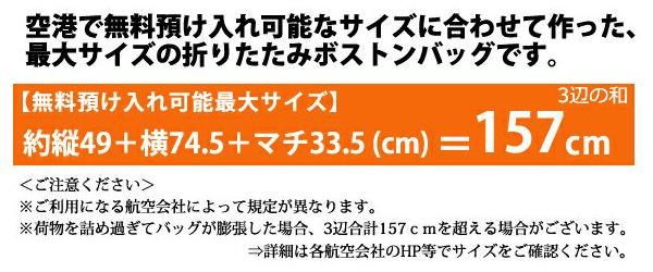 | 空港で無料預け入れ可能最大サイズのボストンバッグ。未使用時は折り畳んで収納ケースに入れて持ち運びできます。 |