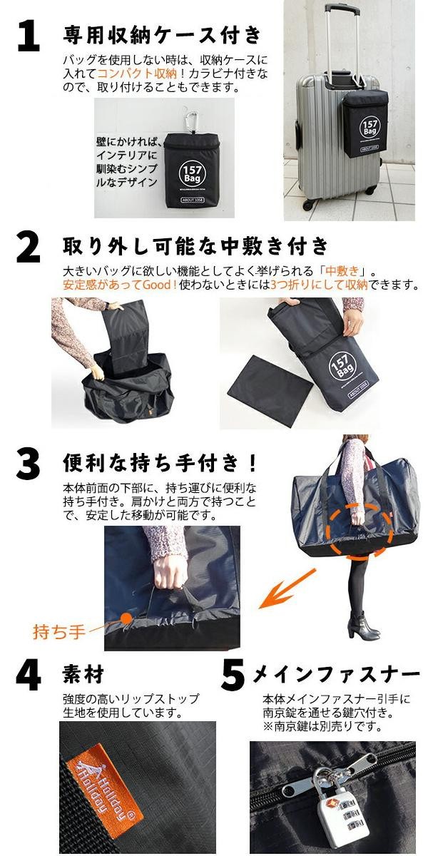 | 折り畳みできる大容量のボストンバッグ。 |