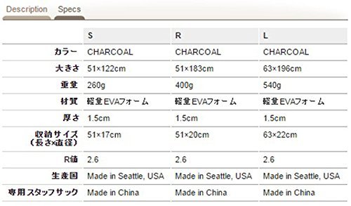 원본상품명: THERMAREST(サ?マレスト) アウトドア用マットレス クロ?ズドセルマットレス リッジレスト クラシック チャコ?ル R(51×183×厚さ1.5cm) R値2.6 30432 【日本正規品】