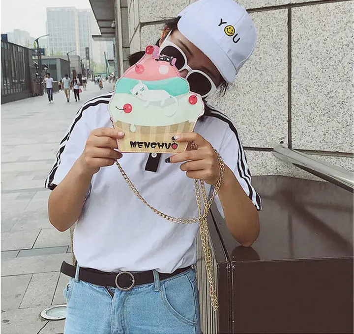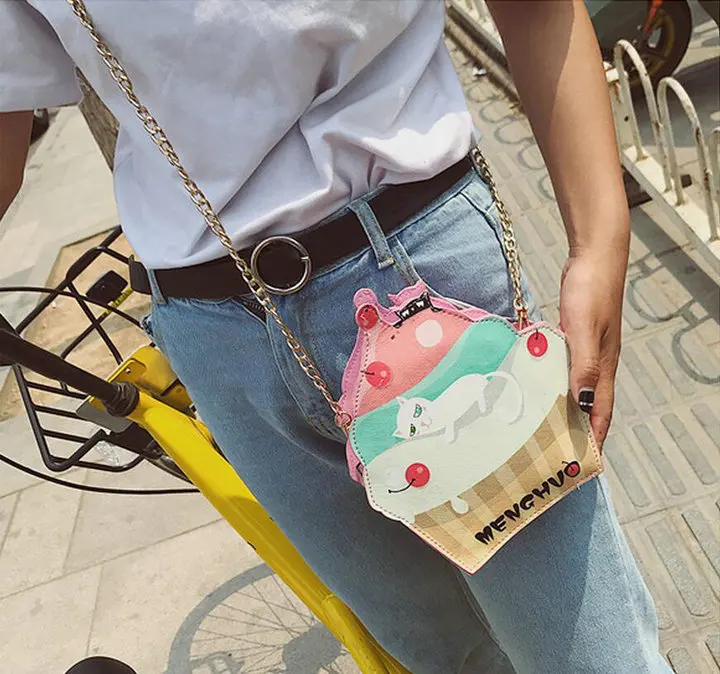 Model Number:H203 pu CUTE!Funny cat Ice Cream Cake Bag Chain bag