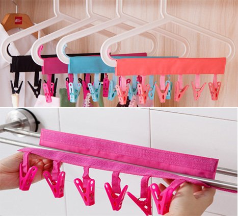 YEHAM Pack of 3 Portable Folding Cloth Drying Hanger with 6 Clothespins use for socks,Underwear,Towel and Other Small Objects