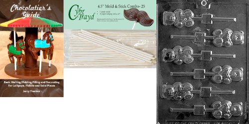 Cybrtrayd 45St25Bk-V111 'Teddy with Heart Lolly' Valentine Chocolate Candy Mold with 25 4.5-Inch Lollipop Sticks and Chocolatier's Guide