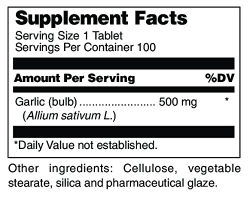 Garlic supplies 500 mg of garlic in each tablet for cardiovascular health.