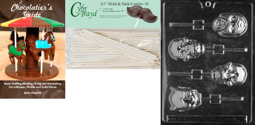 Cybrtrayd 'Scary Faces Lolly' Halloween Chocolate Candy Mold with 50 4.5-Inch Lollipop Sticks and Chocolatier's Guide