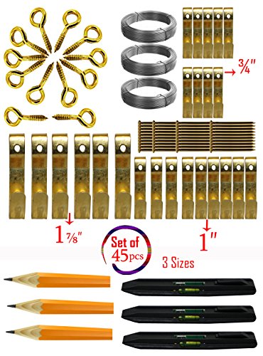 [Product Information]- Includes: wire, pencil, level, nails, screw eyes and 5/10/15/25 pound picture hangers