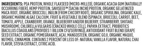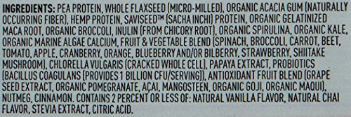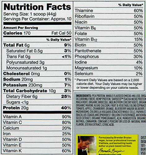 - Feature : New and improved, all-in-one meal made from real, whole food ingredients, only 160 calories / 10 servings per container, 44g per serving / 50% daily intake of vitamins and minerals made from fruits and veggies / 25% daily fiber, 1.5 grams omega-3s, probiotics, and antioxidants / Non-GMO project verified, vegan certified, low-glycemic, gluten-free, and made without dairy or soy ingredients