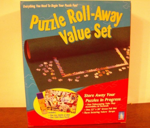 -. Binding : Toy -. Brand : Puzzle Makers -. EAN : 0182506501042 -. Feature : Store away your Puzzles in progress / Everything you need to begin your Puzzle fun! / One telescoping tube that assembles in seconds / 23" x 30" Green Felt Mat / Three Securing Velcro Straps -. IsAdultProduct : 0 -. Label : Puzzle Makers -. Manufacturer : Puzzle Makers -. ProductGroup : Toy -. ProductTypeName : TOYS_AND_GAMES -. Publisher : Puzzle Makers -. Studio : Puzzle Makers -. Title : Puzzle Roll-Away Value Set -. UPC : 182506501042