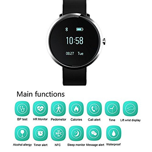 -. Feature : Excelent ultra-thin design,life waterproof, perfect wear & use experience. / Automaticly monitor the heart rate changes and blood pressure in 24 hours,it will remind you if there is arrhythmia. / Support bluetooth 4.0,IOS 8.0 and Android 4.4 Above Remind With Vibration,easy read large LED screen. / With mulitifunction like Alcohol allergy detection,call SMS reminder, Sleeping monitor,Alarm clock and pedometer. / Bigaint offers 100% brand new and high quality and we stand behind the best after service.
