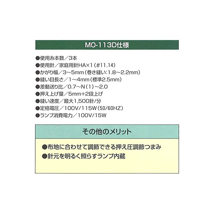 원본상품명: JUKI 1本針3本差動送り付きオバロックミシン MO-113D