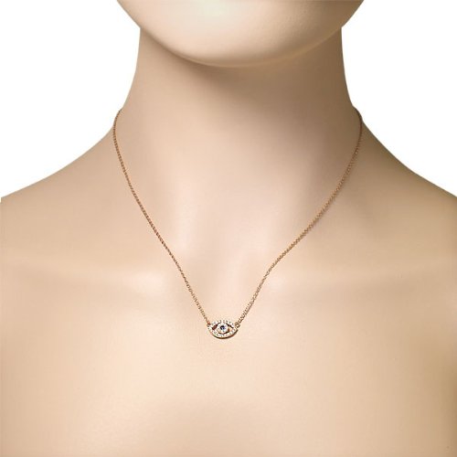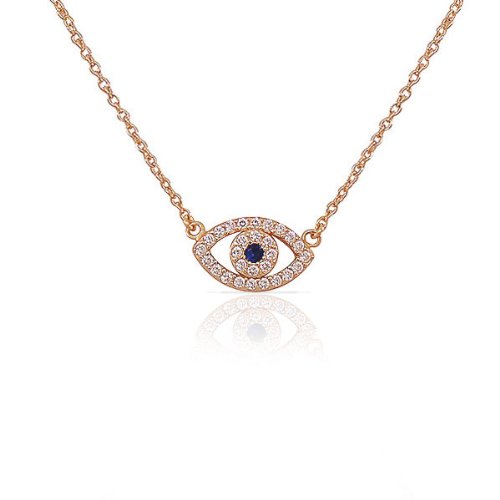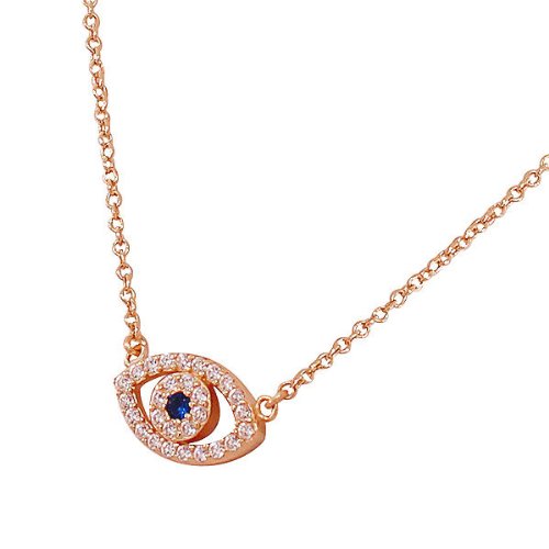 The sterling silver jewelry is a perfect gift for a lady. The pendant showcases an elegant design of the Hamsa charm set onto a delicate link chain and sparkling with a single gorgeous blue rhinestone and multiple small white CZ stones that decorate this unique pendant. The Evil Eye charm on this necklace is believed to protect the wearer from bad luck. The necklace is crafted of rose gold-toned sterling silver. Get it for your loved one, or treat yourself for a classic timeless style. The delicate yet durable adjustable link chain measures 16.00in - 18.00in long and locks with a spring ring type of clasp for extra security. Look and feel great with this exquisite necklace!Feature