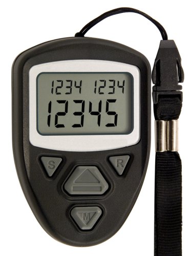 -. Feature : Rotating handheld pitch counter for recording 3 pitchers simultaneously / Large, easy-to-read LCD display with 3 independent tally counters / Each counter can be activated without losing previously recorded data / Built-in buzzer for pitch confirmation; counts either up or down / Includes CR-2032 lithium battery and 22.4-inch lanyard; 1-year warranty