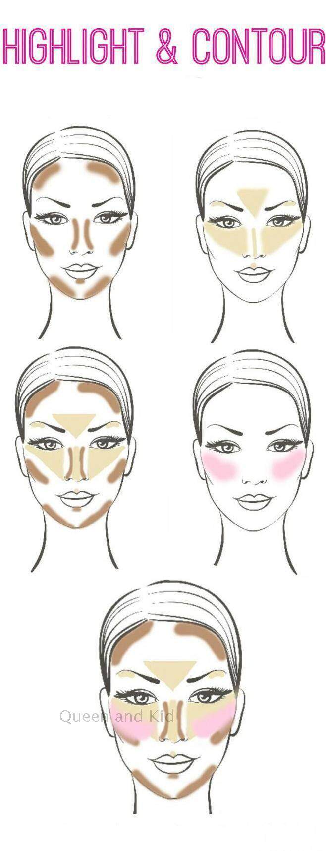 深色阴影粉用于侧脸脸部轮廓及鼻侧,修饰脸型和鼻型。浅色高光粉用于鼻梁,颧骨,眉骨,配合阴影粉让鼻梁高挺,颧骨饱满,眼型立体。注意刷粉时,先吹去刷头多余的粉末,上粉轻盈,上粉处和肤色要有过度。腮红用于脸颊。