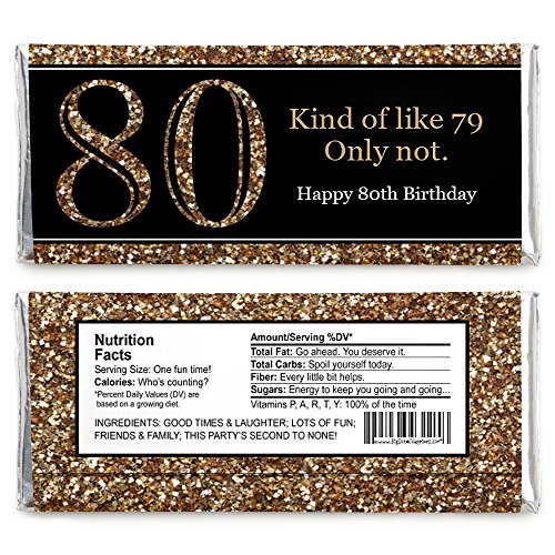- Adult 80th Birthday - Gold - Candy Bar Wrappers Birthday Party Favors - Set of 24 wrappers & foils (Candy bars not included)