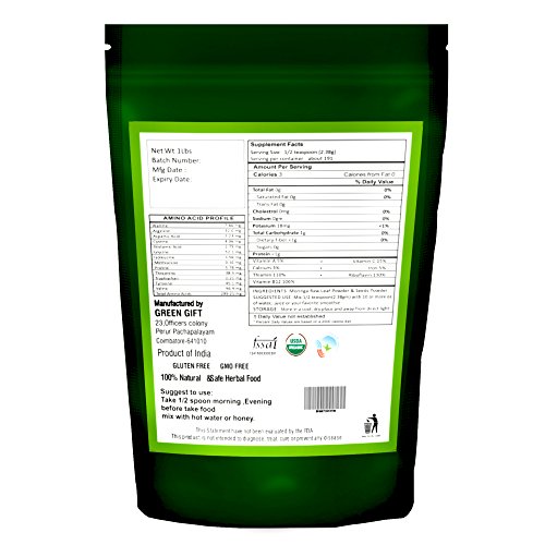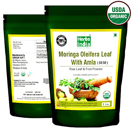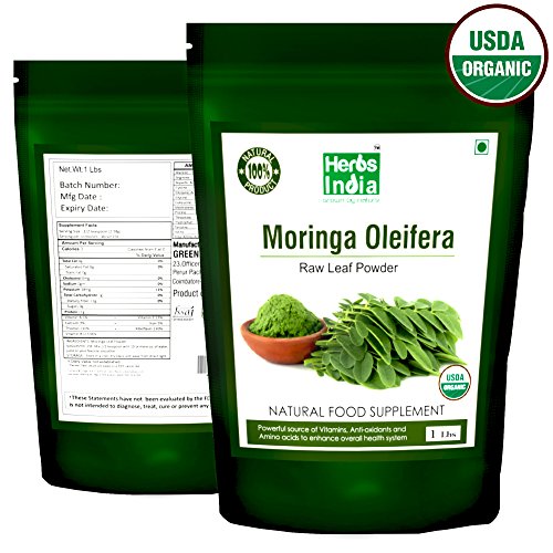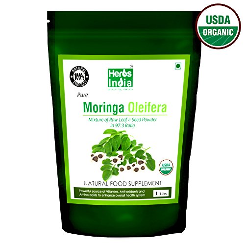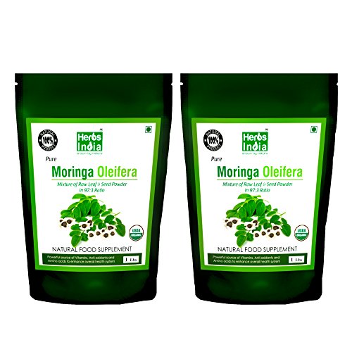 Moringa Powder - Leaf and Seed Powder in (97:3) Ratio - USDA Certified Organic, All Natural No Preservative - HerbsIndia (Pack of 2 X 1 Pound)
