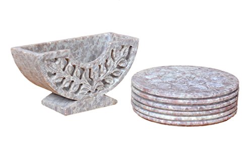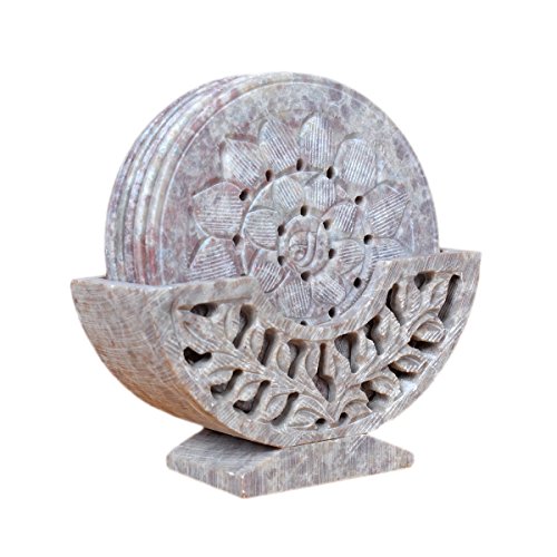 Hashcart Designer Coasters for Drinks-Hot & Cold/Carved Marble Coaster Sets with Holder/Dining, Tea & Coffee Table Decorative Cocktail Coasters