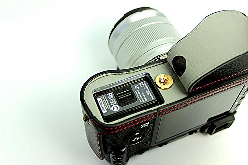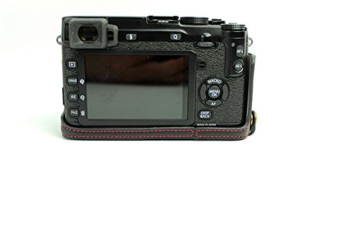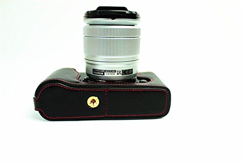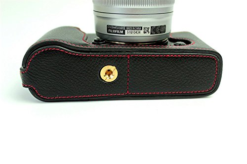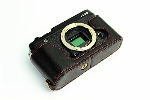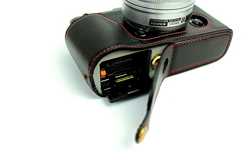 BolinUS Handmade Genuine Real Leather Half Camera Case Bag Cover for Fujifilm XE1 X-E1 XE2 X-E2 Opening Version + Hand Strap -Black