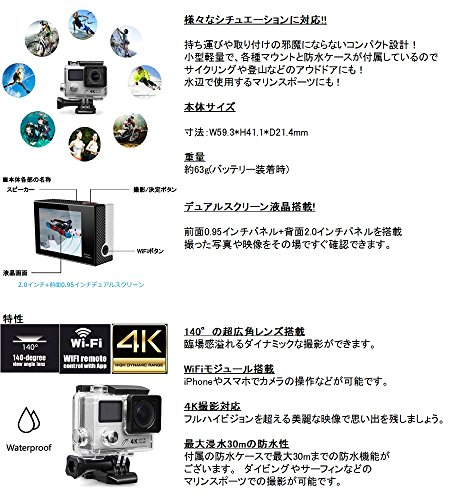 ●해상 도1080p60의 영상으로 기록에 옵니다.●부속 방수 케이스가 있기 때문 마린 스포츠나 윈터 스포츠로도 사용하실 수 있습니다!●소형인 바디와 각종 마운트 부속이기 때문에 여러가지 곳에 장착 가능합니다.●스포츠 아웃도어에!